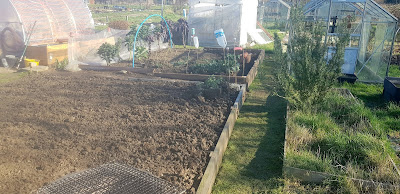 The patch where we grew the Runner beans this year (behind the polytunnel) needs to be “developed” in the spring. We want to secure the polytunnel from the rear and support the frame with tall wooden posts… so this is quite a big last project for the polytunnel.